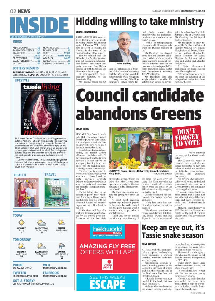 Staying abreast of Hobart’s art scene as the Mercury’s Arts editor.